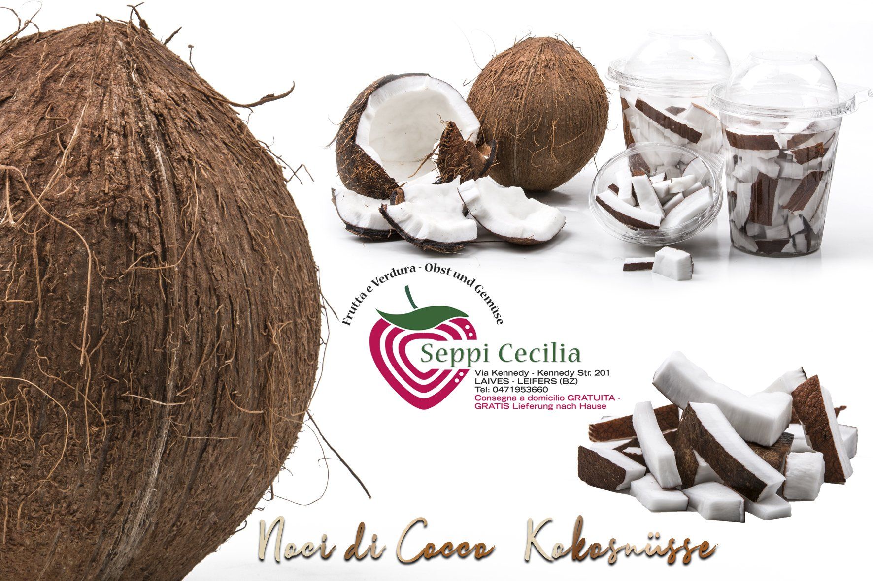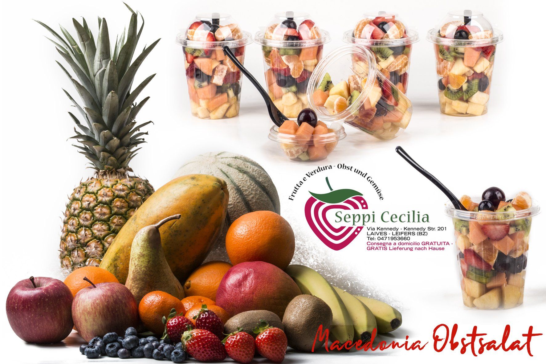 Da Seppi Cecilia troverai un'ampia scelta di frutta tagliata e confezionata fresca tutti i giorni: fragole, macedonia, cocco, ananas, melone e anguria.
