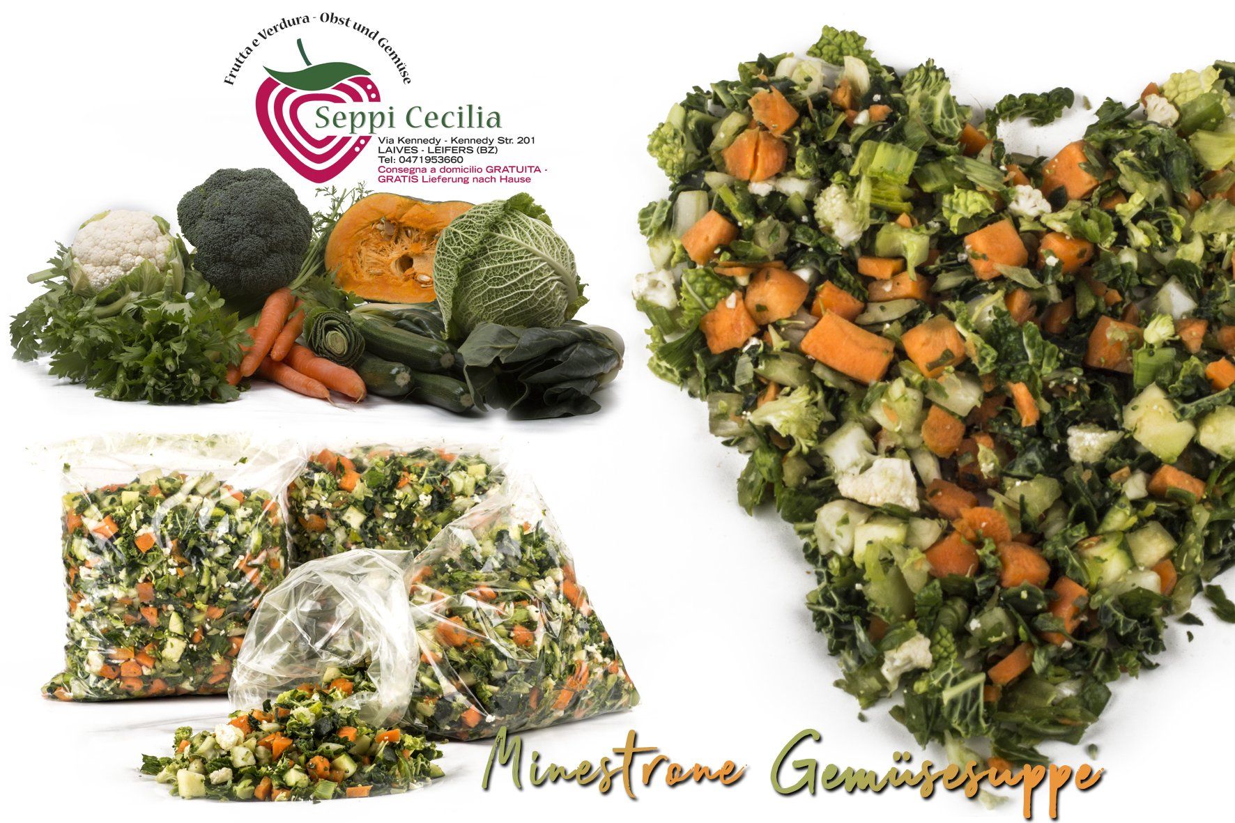 Inoltre, troverai anche verdura tagliata fresca: minestrone, zucca, carote, peperoni, cappucci e soffritto.